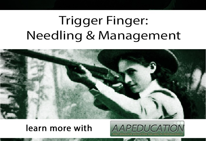 A 2016 paper titled 'Acupuncture for the treatment of trigger finger in adults: a prospective case series' by Motohiro Inoue et al., reinforces what we treat in our Advanced Upper Quadrant Course in relation to managing digital stenosising tenosynovitis, or as it is commonly called 'trigger finger'. You can read the full abstract here: http://aim.bmj.com/content/early/2016/07/11/acupmed-2016-011068.abstract