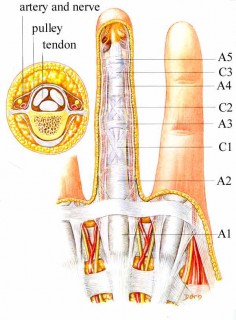 - 1.During the treatment process, brace the finger, so that repeated catching of the tendon at the A1 pulley is prevented, reducing tendon aggravation (notable first thing in the morning)